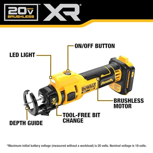 Specification: DEWALT 20V MAX* XR Brushless Drywall Cut-Out Tool (Tool Only) (DCE555B)