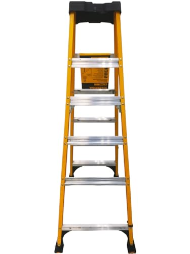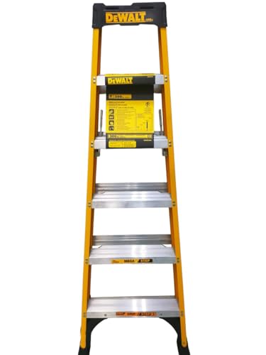 This DeWalt 6 foot non-conductive fiberglass step ladder has a load capacity of 300lbs, rated ANSI Type IA. This ladder features an innovative top with magnet and a couple of tool slots, 25% greater step surface, an have an effect on absorption system, heavy duty boots with non-marring bonded tread routinely fastened to the higher boot to create a safe slip-resistant footing, inside spreader braces, wide back braces, and double-rivet step construction. This DeWalt DXL3010-06Y step ladder meets or exceeds the security standards set by ANSI, CSA, and OSHA.