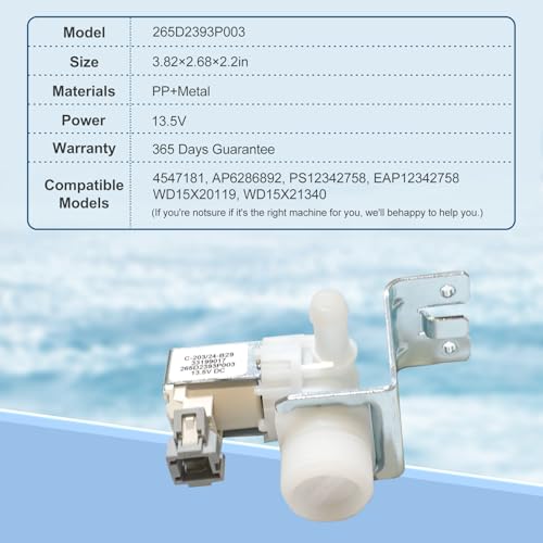 Dishwasher Water Inlet Valve Modle 265D2393P003 Replacement for GE Part WD15X24213 WD15X22999 WD15X21340 WD15X20119 WD15X26140