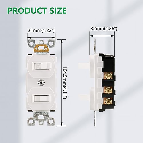Specification: Double Toggle Light Switch,15 Amp AC120 Volt,Residential Grade Electrical Wall Switch,Great for Home, Office & Kitchen, White,ETL Listed