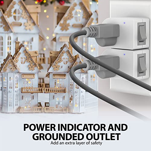 Fosmon Grounded Outlet with ON/Off Switch (2 Pack), 3 Prong Electrical Plug Outlet Switch, 245J Single Port Power Adapter Surge Protector, Outlet Extender, 15A Circuit Breaker, White, ETL Listed