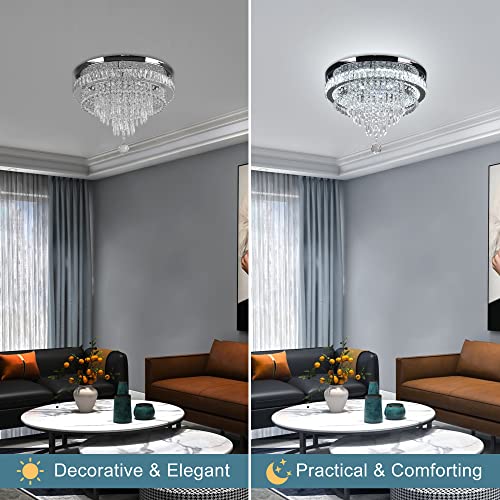 FRIXCHUR 19.7″ Crystal Chandeliers Crystal Ceiling Light Fixtures LED Flush Mount Light Modern Chandelier for Living Room Bedrooms Dining Room 6500K Cool White
