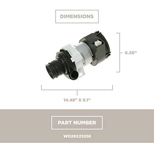 This circulation pump assembly (part number WD26X23258) is for dishwashers