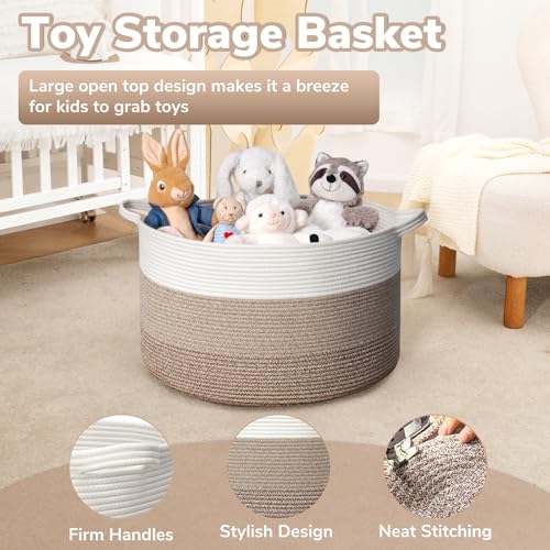 Specification: Goodpick Large Laundry Basket, Woven Basket for Blanket Storage, Dirty Clothes Basket for Living Room, Nursery, Bedroom, Rope Storage Basket for Pillows, Toys, 21.7” x 13.8”, Light & Brown