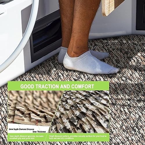 ANTI-SLIP TRACTION PAD: Boat flooring with 3mm depth diamond grooves, increase excellent grip and good skid resistance. No longer worry about wet feet making you fall. GOOD TRACTION AND COMFORT ON YOUR FEET