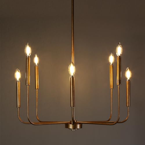 Specification: LALUZ Champagne Antique Gold Chandelier, 8-Light Modern Farmhouse Dining Room Chandelier Over Table, 27” Aged Brass Chandeliers Hanging Light Fixture for Dining Room, Living Room, Bedrooms, Foyer