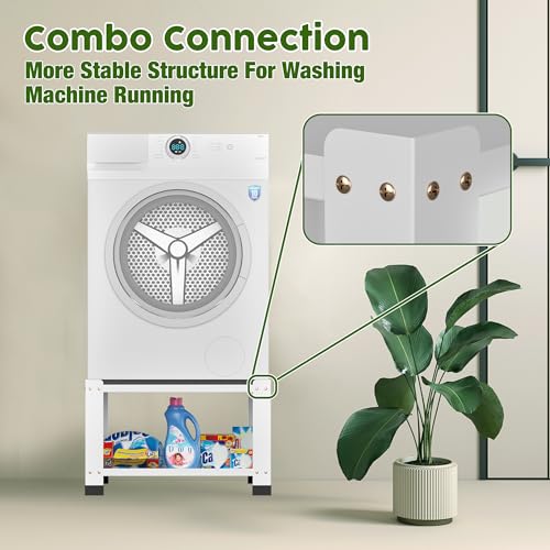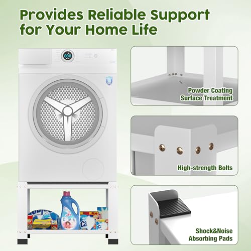 [DURABLE STRUCTURE] Heavy-duty steel washing machine fridge stand is sturdy and can be utilized long time. The surface of the product is powder coating is not going to rust, non-toxic and no smell.