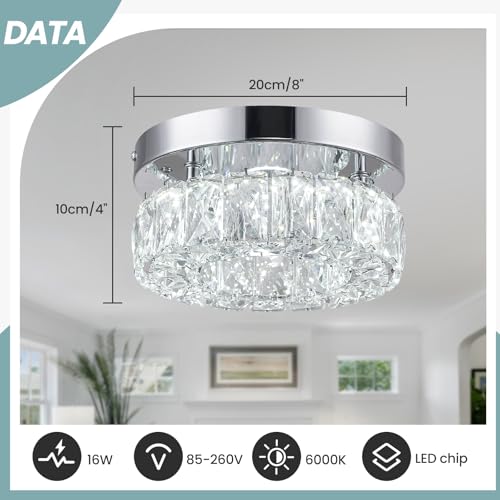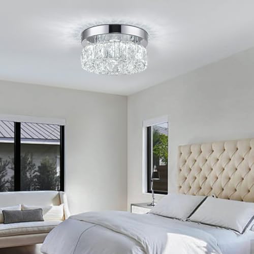 Specification: LEONTYNE 7.9″ Small Modern Crystal Chandeliers Cool White LED Ceiling Chandelier Stainless Steel Flush Mount Ceiling Light Fixtures for Bedroom Foyer Hallway Closet (6500K)