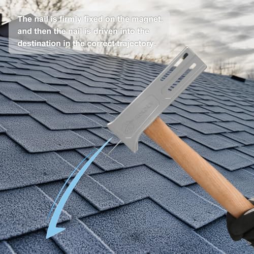 Amazing speed: The round magnet on the striking surface of the roofing hammer can directly absorb the roofing nails and felt caps, and then swing the hammer to nail the nails into the roofing shingles or other destinations in the proper trajectory. It saves the process of holding the nails with the other hand, greatly improving the speed of nailing!