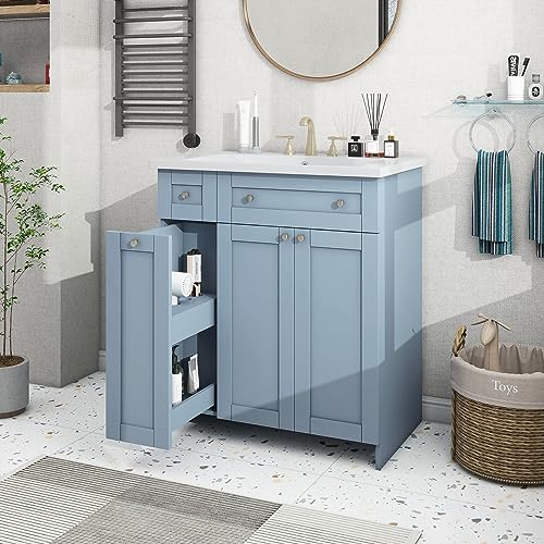 Merax 30″ Bathroom Vanity with Single Sink, Combo Cabinet Undermount Sink, Solid Wood Frame Bathroom Storage Cabinet, Blue