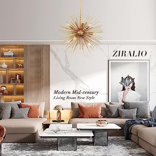 【9-light Sputnik Chandelier】- Ziralio gold sputnik chandelier is inspired by modern minimalist concept and satellite design, just like a star to light up your home. 24in wide, a great lighting item for kitchen, dining table, living room, study room, restaurant, hotel, bedroom, creates a mid-century modern and stylish indoor lighting vibe.
