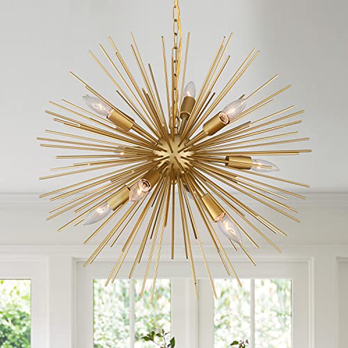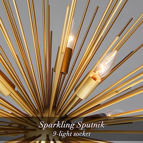 Specification: Modern Gold Sputnik Chandelier 9-Light Dining Room Chandelier Light Fixture for Living Room, Bedroom, Kitchen, Entryway, Foyer, 23in 15LB Solid Metal, YB233B9G