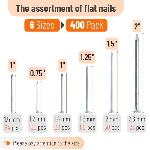 Specification: Mr. Pen- Nail Assortment Kit, 400 PCS, 6 Sizes, Silver, Small Nails for Hanging Pictures, Finishing Nails, Wall Nails for Hanging, Pin Nails, Hardware Nails, Assorted Nails, Galvanized Nails