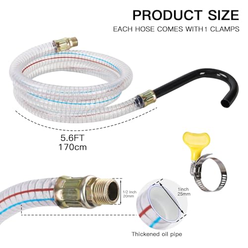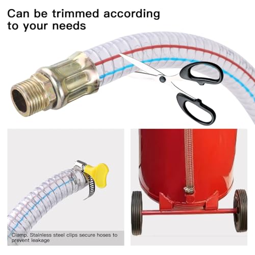 Ideal for Heavy-Duty Drainage: At the same time as our product comes with a 1/2-inch threaded connection at the end, we keep in mind that some oil drains are better suited for direct hose connections without threads. Rest assured, the thickened 25mm diameter hose is fully compatible with such setups and can also be securely connected the use of stainless steel hose clamps (we provide two clamps as a bonus). Perfectly suited for Portable Waste Oil Drains, Air Operated Drainers, and Low Profile Oil Drain Pans, this hose provides efficient fluid drainage and is designed to take care of heavy-duty fluid and fuel tasks with ease.
