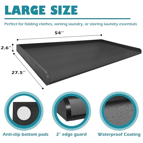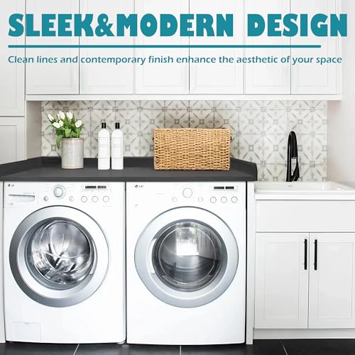 【Generous Dimensions】 Measuring 54 x 27.5 x 2.6 inches, fit the various washer and dryers available on the market, our countertop provides ample space for your whole laundry tasks. Whether folding clothes, sorting laundry, or placing essentials, this countertop accommodates it all with ease. Its large size ensures easy maneuverability, making your washing and drying experience hassle-free.