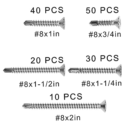 Quite a lot of Sizes: package includes various sizes of Self Tapping Screws, suitable for your Quite a lot of projects. Screws sizes:#8*3/4″,#8*1″,#8*1-1/4″,#8*1-1/2″,#8*2″.