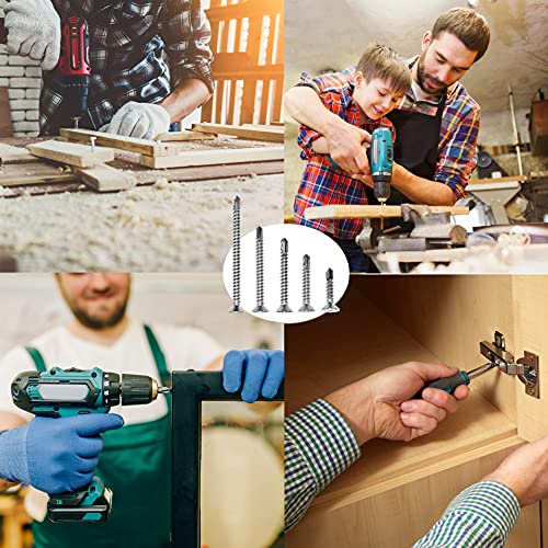 Self Drilling Drywall Screws Assortment Kit(150pcs),410 Stainless Steel Self Tapping Sheet Metal Screws Nails Suit for Woodworking and Metal in 5 Sizes (3/4,1 in,1-1/4,1-1/2,2in)