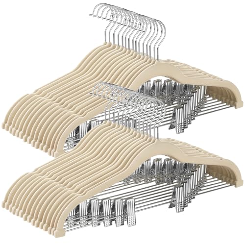 Specification: SONGMICS 30-Pack Pants Hangers, 16.7-Inch Long Velvet Hangers with Adjustable Clips, Heavy-Duty, Non-Slip Skirt Hangers, Space-Saving for Pants, Skirts, Coats, Dresses, Sandy Beige UCRF012M30