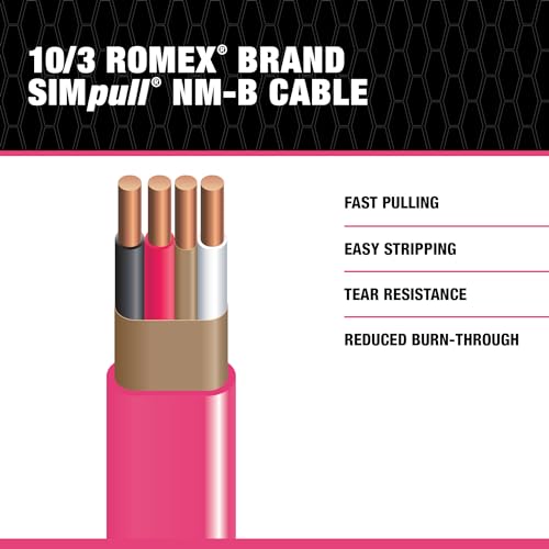Specification: Southwire Romex SIMpull Electrical Wire 10 Gauge, 3 Conductors, 50 Ft, NM-B, Pink, 63948522