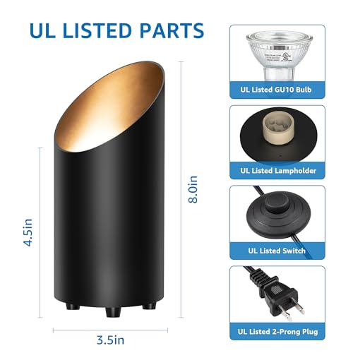 RELIABLE & STYLISH FLOOR CAN LIGHT – All components are UL certified, including GU10 bulb, lamp holder, cable and switch, secure and durable. Black metal construction, 8″ high × 3.5″ wide beveled cylindrical shape give the uplights fashion and art, perfect for indoor accent lighting.