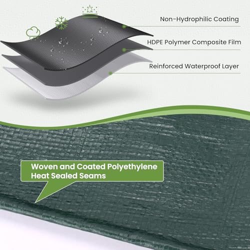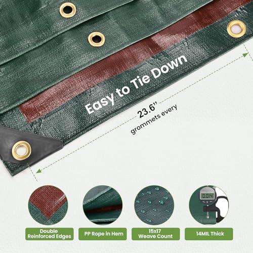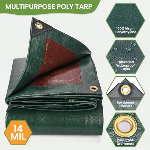 Tarp Waterproof 16′ X 20′, Heavy Duty Tarps Waterproof 14 Mil Waterproof Tarp Multipurpose Protective Cover Large Tarp UV All Weather Resistant Outdoor Tarp for Shelter Camping, Green/Brown