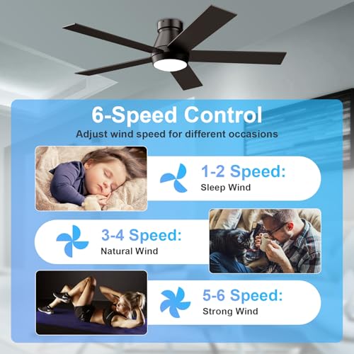 Specification: TCL 52″ Ceiling Fan with Lights, Black Flush Mount Ceiling Fans, 5 Blades Low Profile Ceiling Fans, 6 Speeds DC Reversible, Dimmable, Modern Ceiling Fans for Bedroom, Living Room and Garage