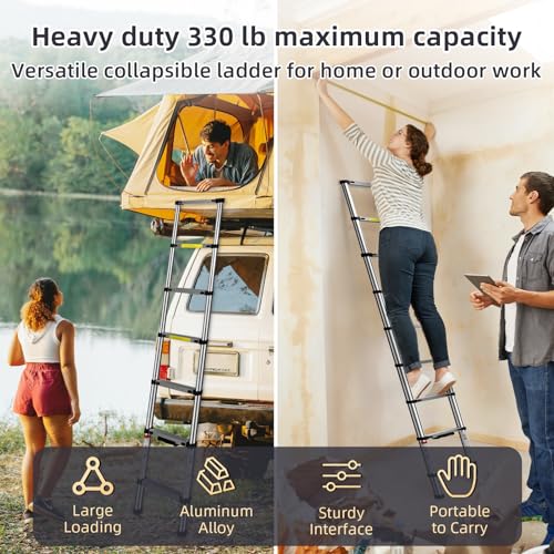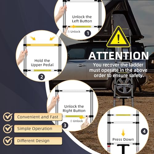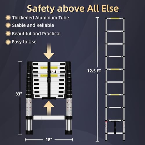 Specification: Telescoping Ladder: 12.5 FT Aluminum Extension Ladder Folding Compact Portable Anti-Slip Collapsible Ladders for Home Attic RV Loft Roof