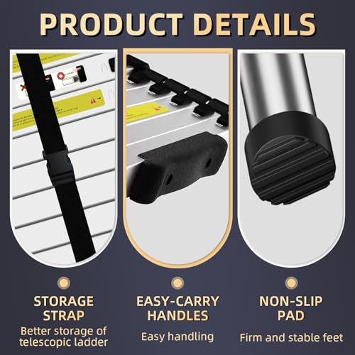 TRUSTED STABILITY – The construction of each step interface of the telescopic ladder has been significantly upgraded with non-slip top and bottom covers to protect walls and floors from scratches. The ladder is virtually immobile when climbing and standing for improved safety.