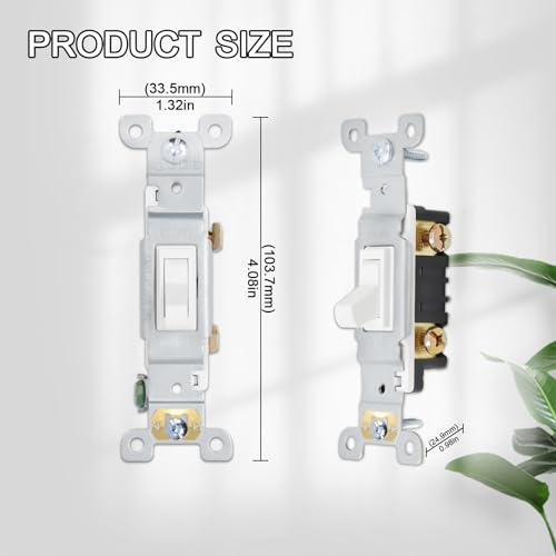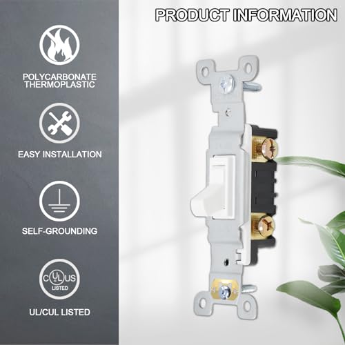 Specification: ThunderWay Toggle Light Switch, Single Pole Light Switch, 15 Amp, 120 Volt, AC Quiet Switch, Electrical Wall Switch Replacement, Residential and Commercial Grade, UL Listed,(10 Pack,White)