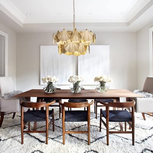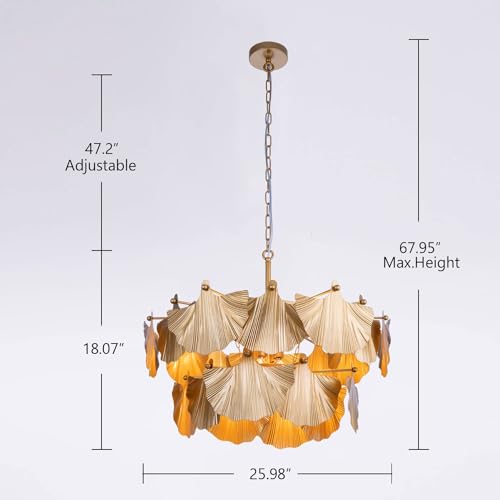 Specification: TOCHIC Modern Farmhouse Chandelier, 8 Lights Gold Chandeliers for Dining Room, Rustic Chandelier with Ginkgo Leaves, Ceiling Light Fixture for Living Room, Bedroom, Kitchen, Entryway, W-25.98″
