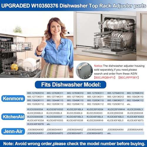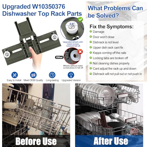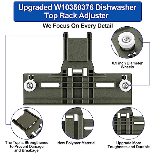 Specification: Upgraded W10350376 Dishwasher Top Rack Adjuster Parts For Whirlpool Kenmore W10195840 KUDS30IXSS4 Upper Rack Part,KUDS30FXSS5 Dishwasher Replacement Top Rack,For Kitchenaid Dishwasher Parts Upper Rack