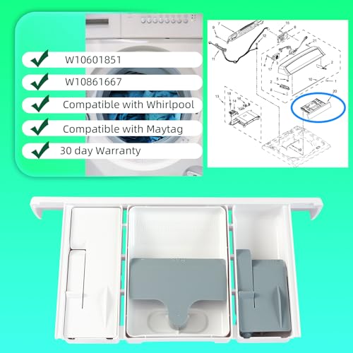 【Upgraded】This dispenser drawer (part number W10861667) is for washers, the washer dispenser drawer W10861667 houses the compartments for the detergent, fabric softener, and ble-ach. The washer dispenser drawer replacement part is high standards, exceeds original equipment manufacturers with high quality standard. You can buy with confidence.
