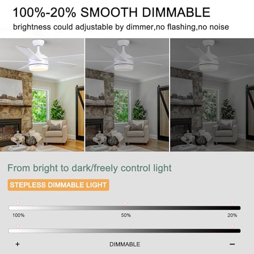 Specification: YUHAO 52 inch White Ceiling Fan with Lights and Remote Control,Dimmable 3 Color temperatures LED,6 Speed Reversible DC Motor,5 Blades Modern Ceiling Fan for Indoor or Covered Outdoor