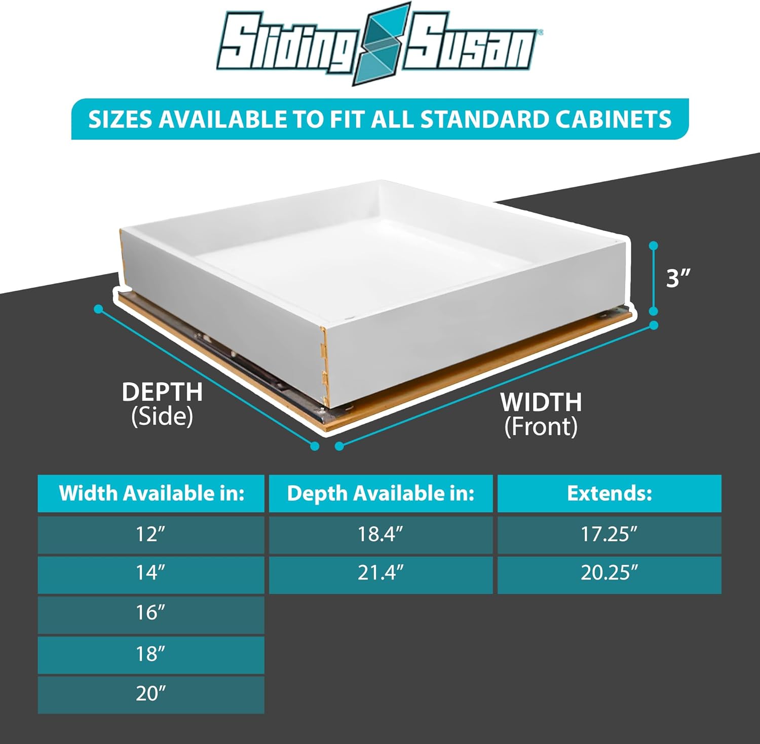Our SlidingSusan drawers feature a robust dovetail design that offers unparalleled strength and sturdiness. Constructed from long-lasting, heavy-duty materials and no nails or screws, our premium drawers provide both convenience and lasting durability. No more bending down to access items in the back of the drawer. SlidingSusan drawers extend 100% for easy access. Holding up to 100 pounds at full extension, they deliver a lifetime of reliable and dependable storage. Ideal for kitchens, pantries, garages, bathrooms, or any storage space, our cabinet organizer drawers feature quiet, easy-close slides with high-quality hydraulic dampers to prevent slamming, spilling, and shifting. This smooth action and concealed design delivers a high-end look for your cabinetry while keeping items and supplies secure and organized.