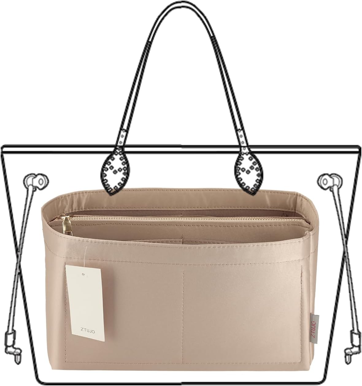 💗 Total 4 COLORS of Tote Bag Organizer Insert are availables: Silky Beige, Silky Red,Silky Black and Silky Brown. Pls Choose the color you Prefer.