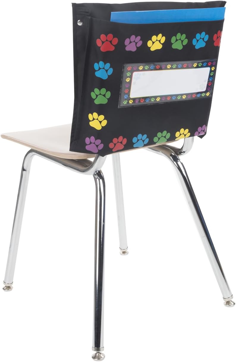 CLASSROOM ORGANIZATION: This pack includes 6 paw prints border store more deep pocket chair pockets with 6 name tags. Really Good Stuff Paw Prints Border Store More Deep Pocket Chair Pockets help stud
