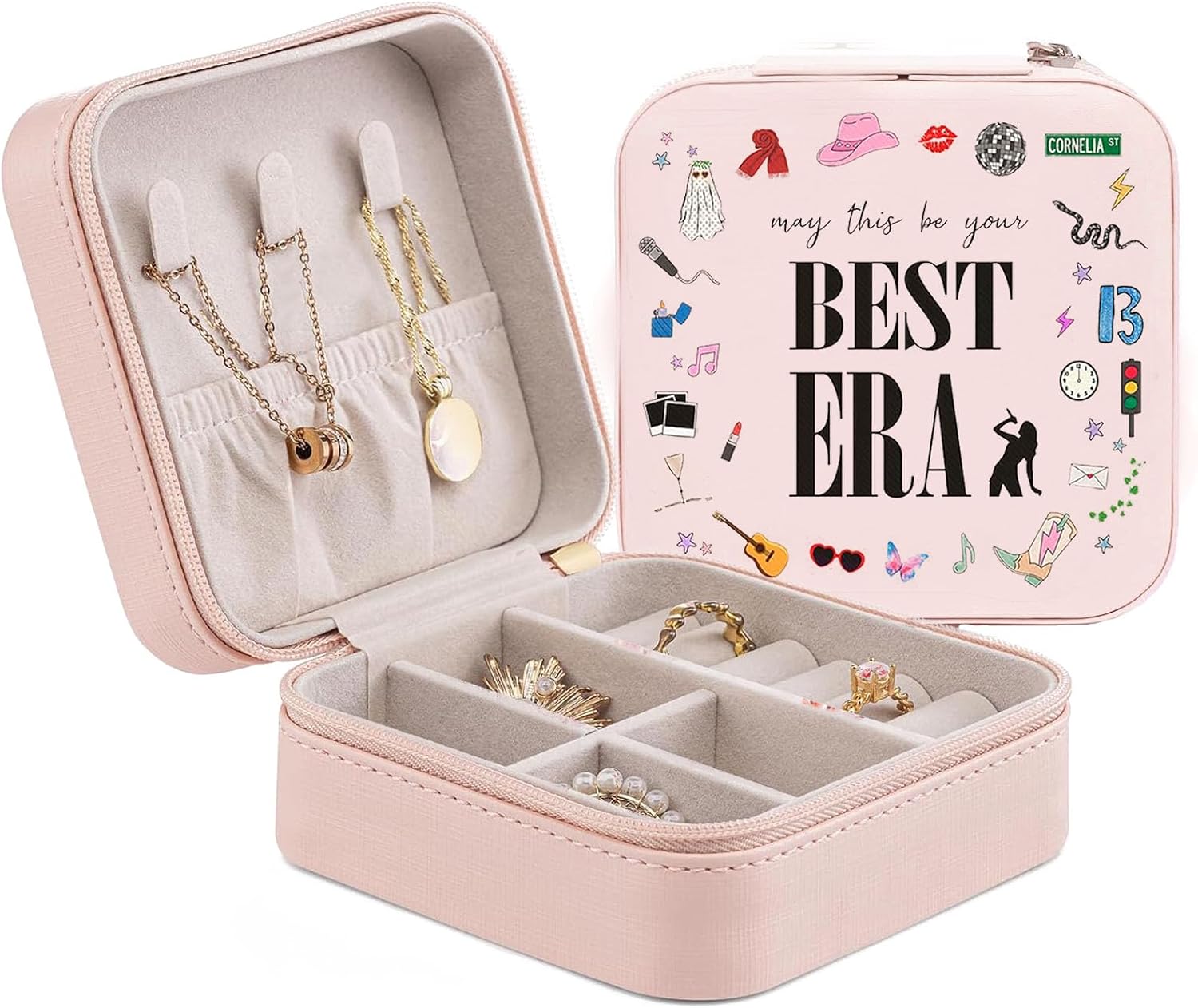 T-S-Inspired Design: Adorned with her signature imagery design, the in a way that fans will treasure.this small travel jewelry case is a must-have for all music lovers.Our Jewelry storage box features this design, making it an ideal beautifully gift for fans.