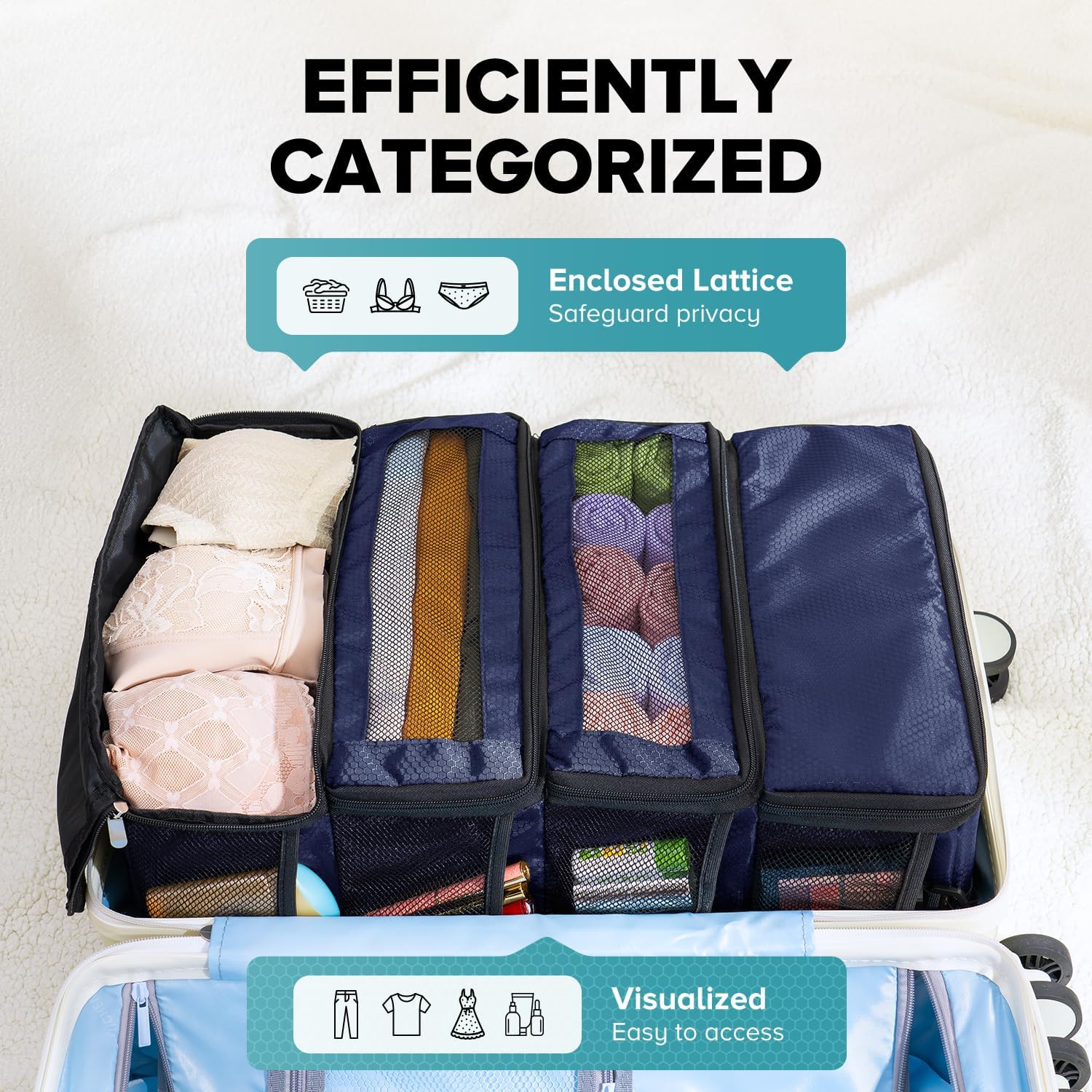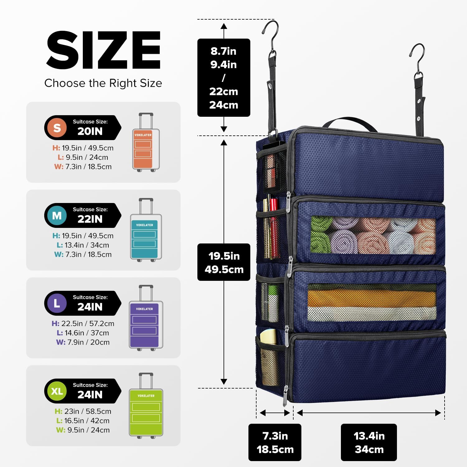 Customers find the luggage organizer well-made with strong hooks and appreciate its design, particularly how it hangs nicely in hotel closets. The storage capacity is positive, with pockets on the sides holding items like wipes, and customers find it easy to pack and unpack. They like how it keeps everything organized and consider it worth the price. The size receives mixed feedback, with some finding it fits nicely in luggage while others say it’s extremely small.