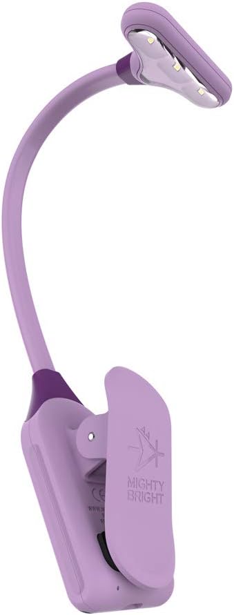 FLEXIBLE AND DURABLE, MADE OF SOFT-TOUCH SILICONE and ABS plastic, with an 8″ flexible neck and padded STRONG-GRIP CLIP that clips onto any surface up to 1.5”. Great reading light for reading in bed, for your kids reading hour, for bookworms, as a flashlight, perfect gentle lighting as a nursing light, for light that won’t disturb your sleeping partner, and for travel. SKU# 47833 (LAVENDER)