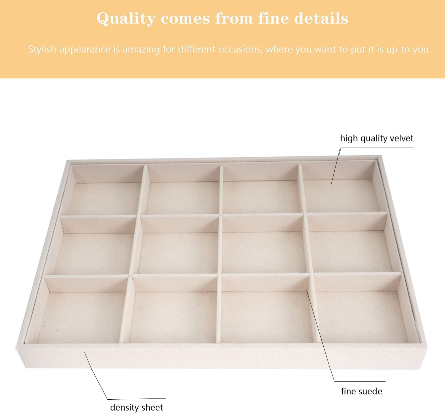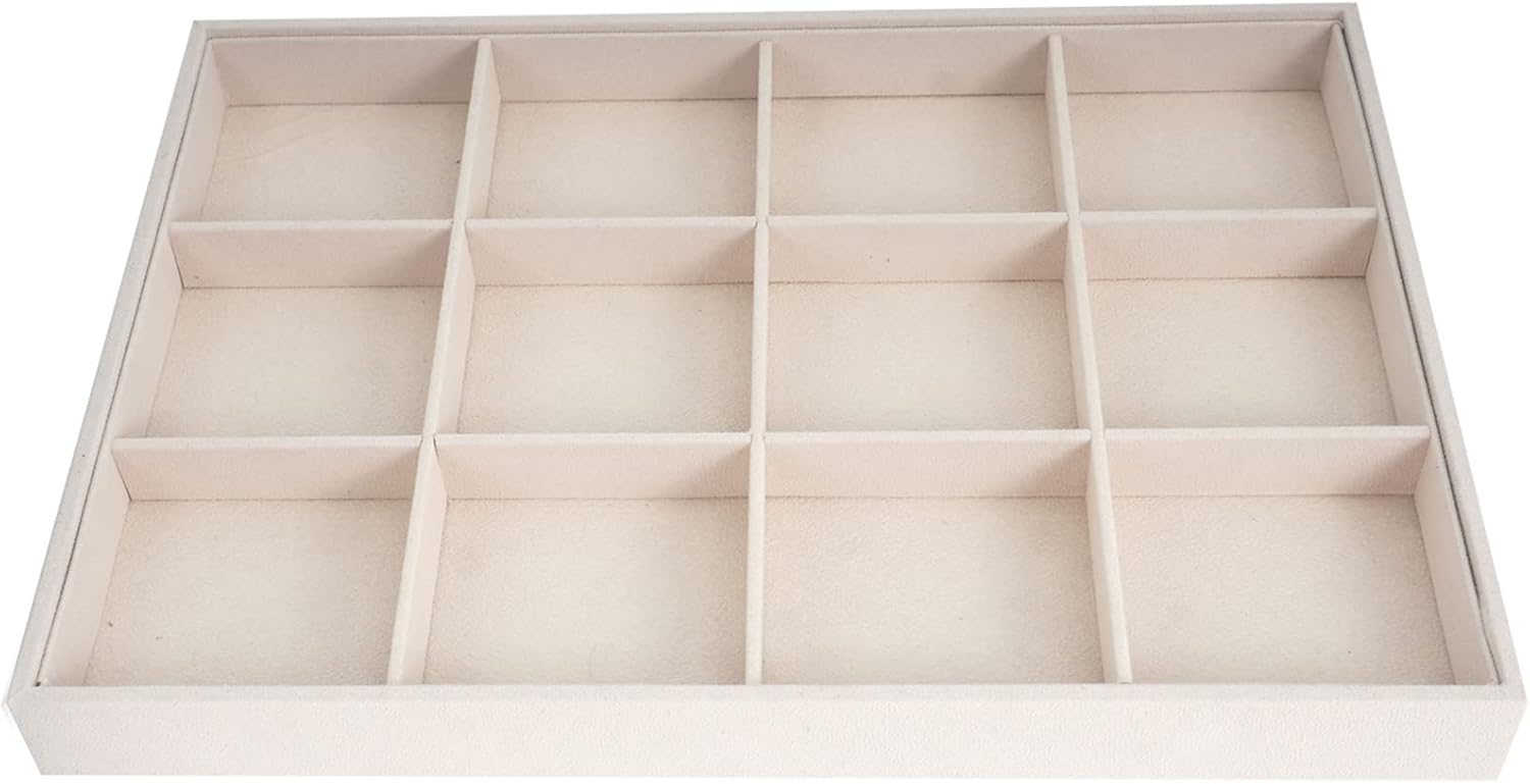Velvet Jewelry Trays for Drawers, Large Jewelry Drawer Insert, Stackable Stacking Accessories Desktop Storage for Dresser(Beige,12grid)