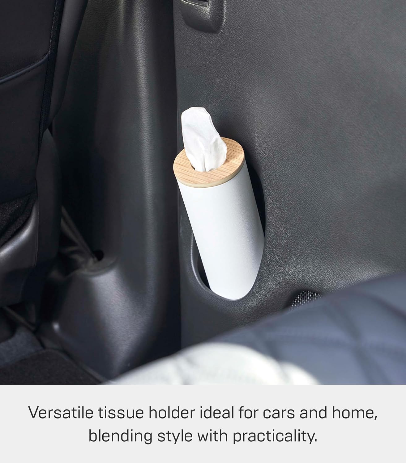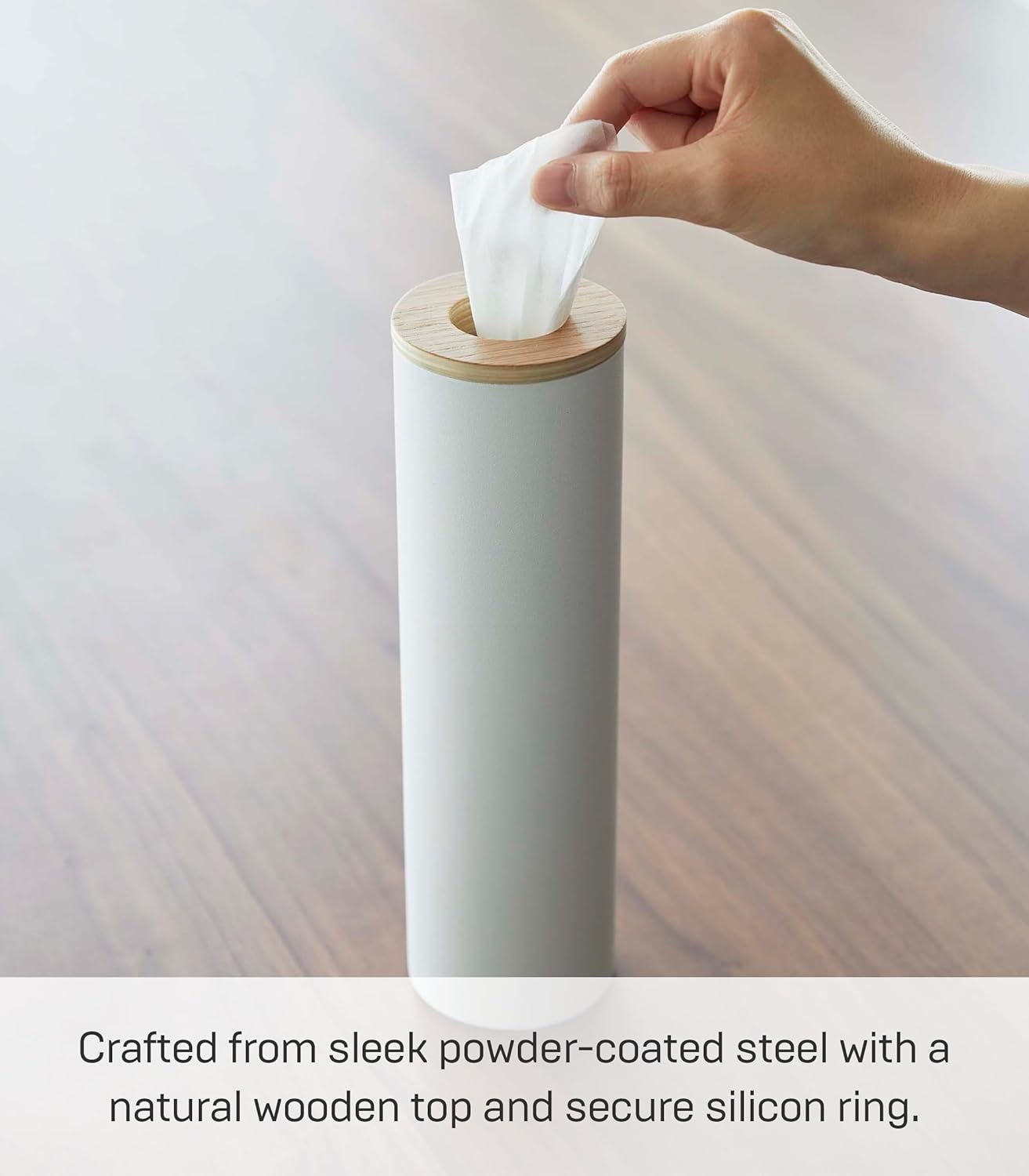 When the tissues become your prized decor piece., Transform everyday tissues into a luxurious decor item with these slender and modern tissue cases. The sturdy cylindrical steel body allows for extra stability while the silicone seal lining the wooden top keeps the lid in place so tissues can easily be dispensed. All you have to do is roll your tissues into a cylinder and insert them in from the top. Pull the innermost tissue up through the opening, and you’re all set! Keep one on your coffee table, by the sink, on your bedside table—or if you choose the small version, even insert one in your car’s cup holder for a classy touch.